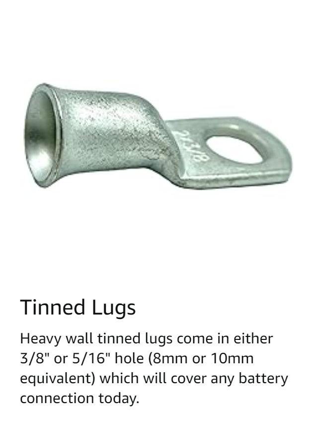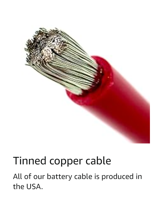 - 6 AWG marine grade battery cable with 5/16" or 3/8" heavy duty tinned lugs. 100% pure tinned copper offers the best possible resistance against corrosion
