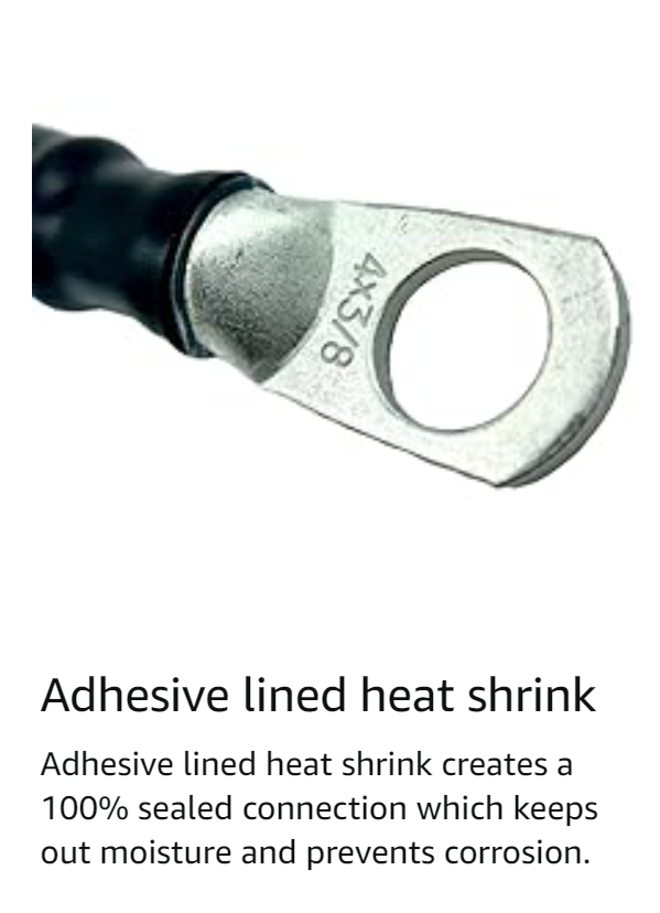 - Heavy duty sealed lugs and adhesive lined heat shrink creates a completely sealed battery cable to prevent corrosion, PVC insulation is oil and fuel resistant and a better insulator than EPDM, Cable meets and exceeds USCG and ABYC specs