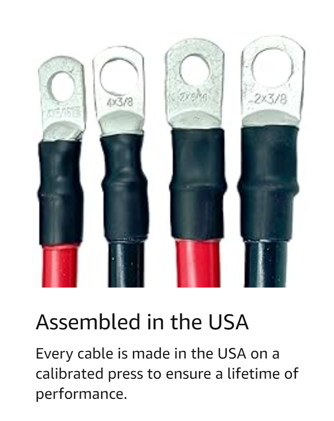 6 AWG Gauge Marine Grade Battery Cables Made in USA, Meets/Exceeds USCG and ABYC specs
